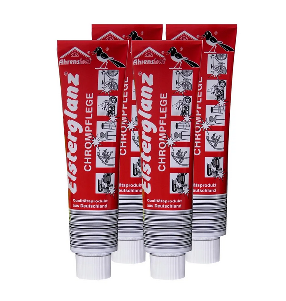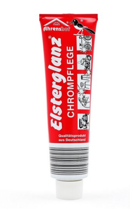 Elsterglanz Chrompflege reinigt, poliert und konserviert zuverlässig Chromflächen und eignet sich besonders gut für die Reinigung und Pflege von hartverchromten Auto- und Motorradteilen.