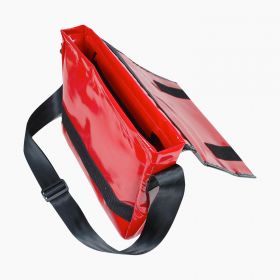 Tasche aus LKW-Plane im DIN A 4 Format. Innentasche mit Reißverschluss und Handyfach. Maße: 36x28x8,5cm I LKW-Plane, KFZ-Gurt als Tragriemen